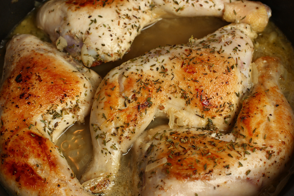 Poached, not fried or roasted chicken